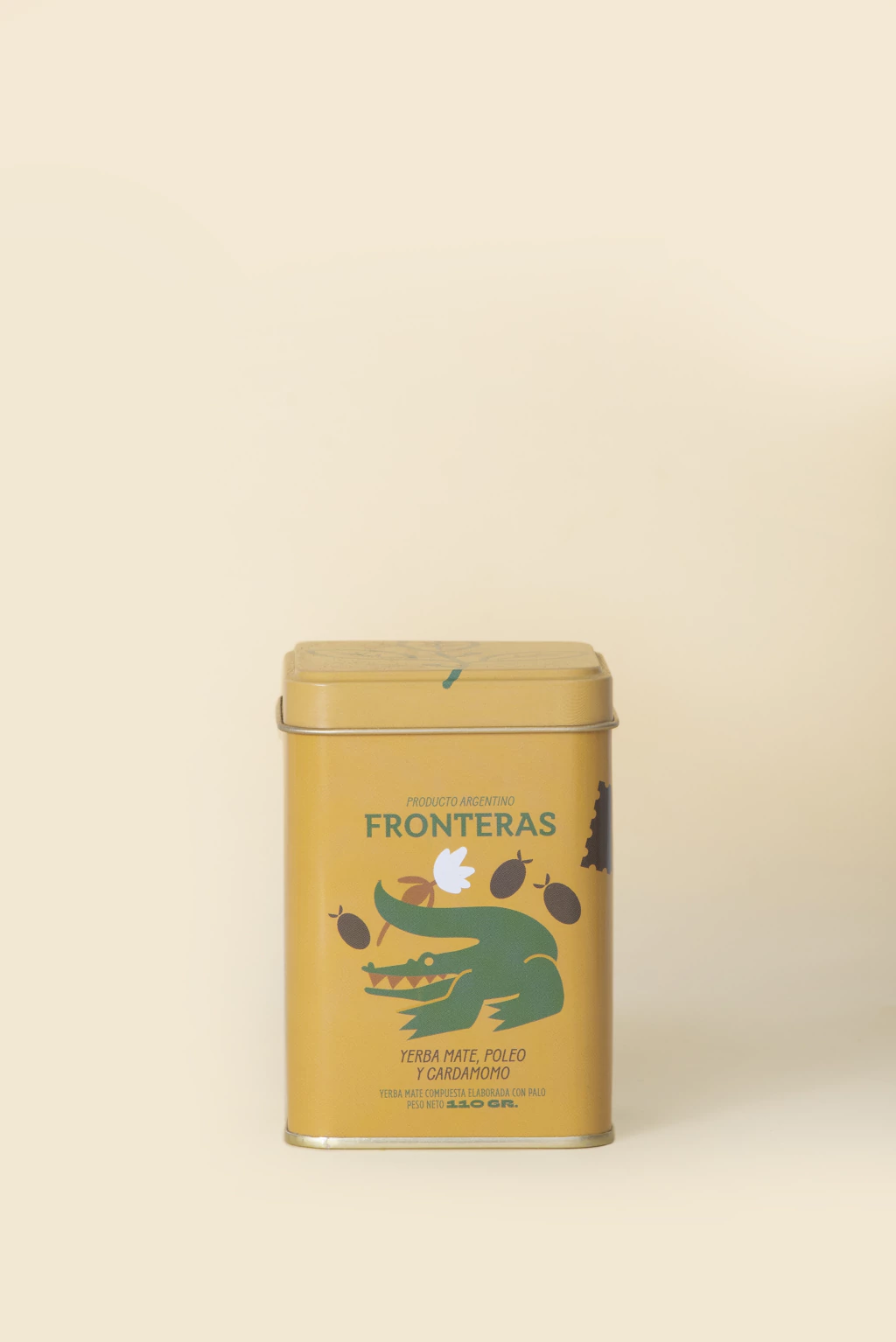 Yerba mate Fronteras en presentación de lata de 110 g. Práctica, canchera y lista para llevar en tu matera. Disponible en distintos sabores:
